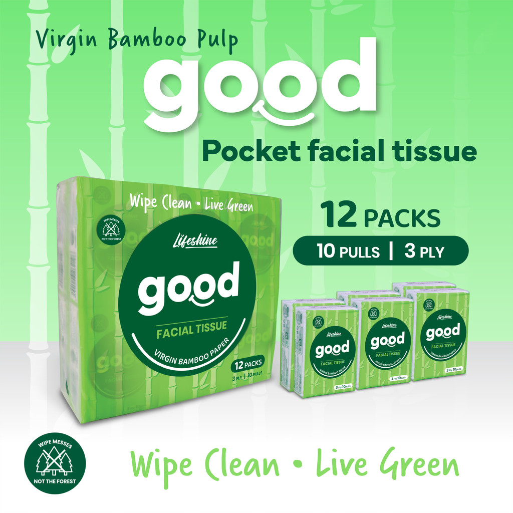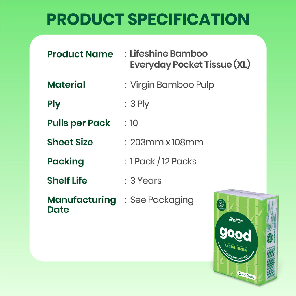Lifeshine Good Everyday Pocket Tissue XL | 3-Ply Bamboo – 12 Packs
