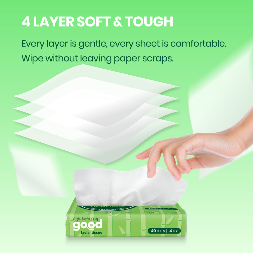 Made from 100% virgin bamboo pulp, this 4-ply tissue is extra thick yet gentle on skin. Compact and easy to carry — perfect for daily use on the go.